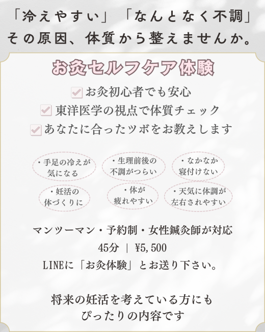 ご希望の方は、公式LINEに「お灸体験」とメッセージ下さい💭